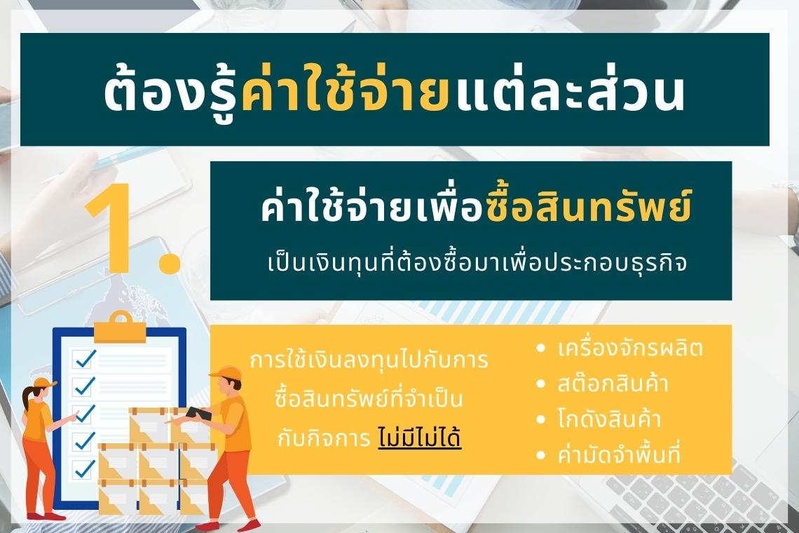 1. ค่าใช้จ่ายเพื่อซื้อสินทรัพย์ ส่วนนี้เป็นเงินทุนที่จ่ายเพื่อซื้อสินทรัพย์