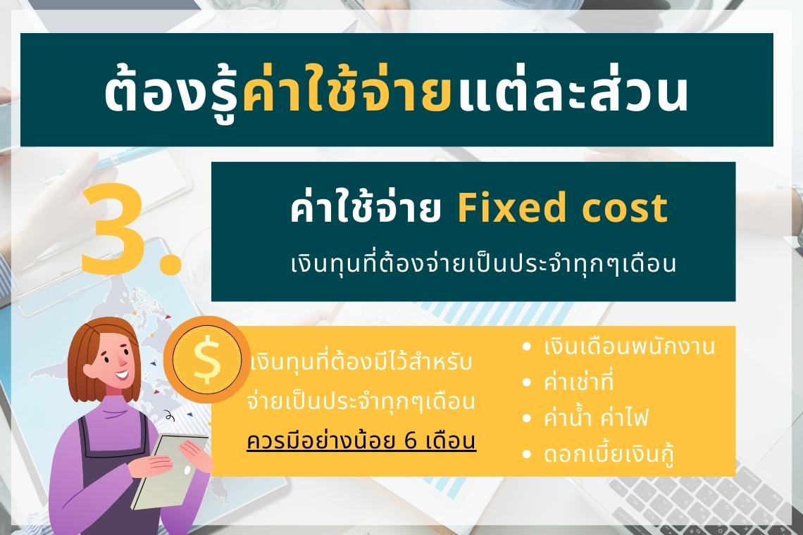 3. ค่าใช้จ่าย Fixed cost เป็นเงินทุนที่ต้องมีไว้สำหรับค่าใช้จ่าย