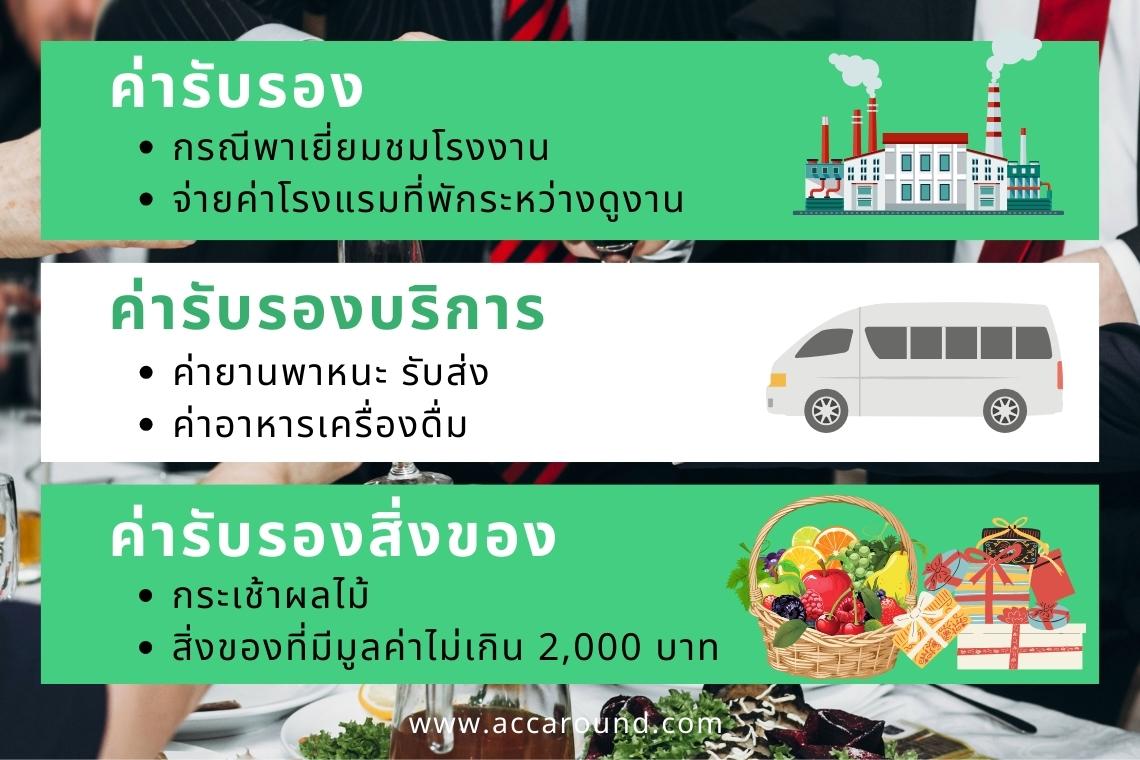 2. ค่ารับรองที่เป็นค่าบริการ เช่น ค่าที่พัก ค่ายานพาหนะ ค่าอาหารและเครื่องดื่ม