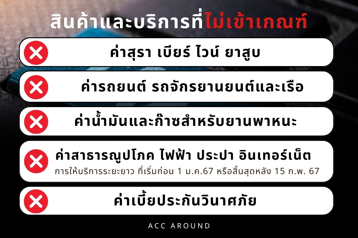 ในส่วนของค่าน้ำมันและก๊าซสำหรับยานพาหนะจะไม่สามารถนำมาใช้สิทธิได้