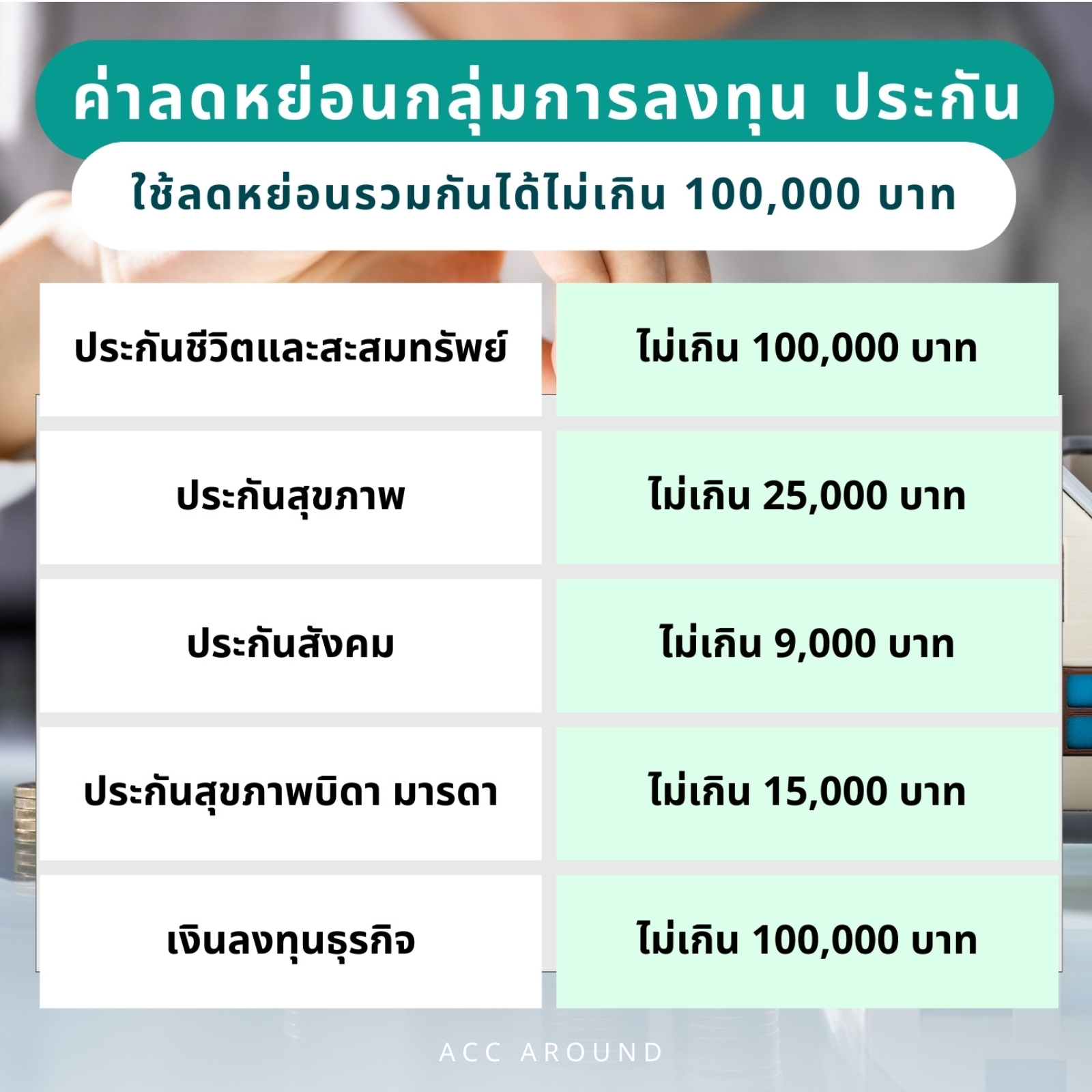 ค่าลดหย่อนค่าเบี้ยประกันชีวิต ค่าลดหย่อนค่าเบี้ยประกันสุขภาพ เป็นต้น