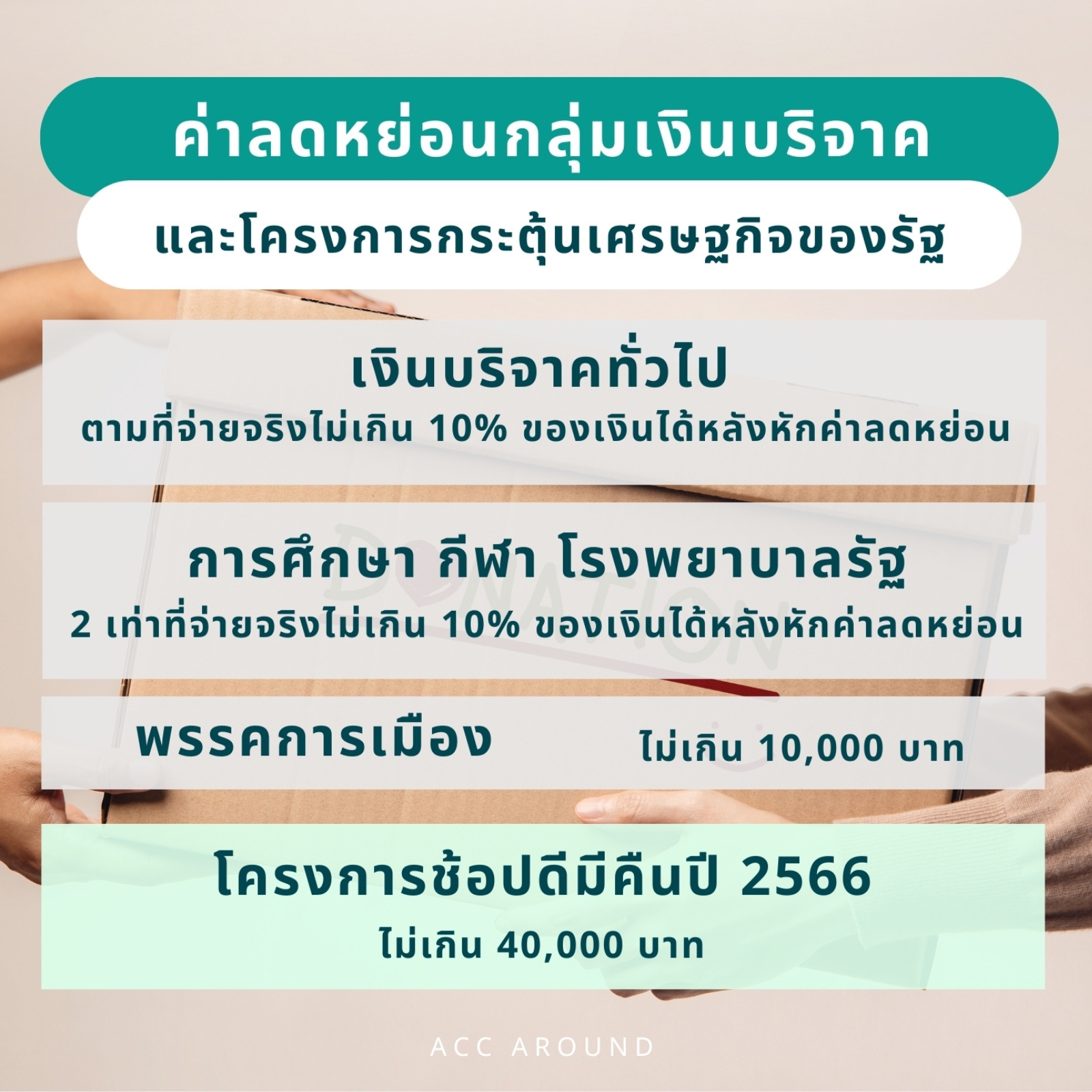 ค่าลดหย่อนค่าบริจาคเงินเพื่อการกุศล การบริจาคให้กับพรรคการเมือง เป็นต้น