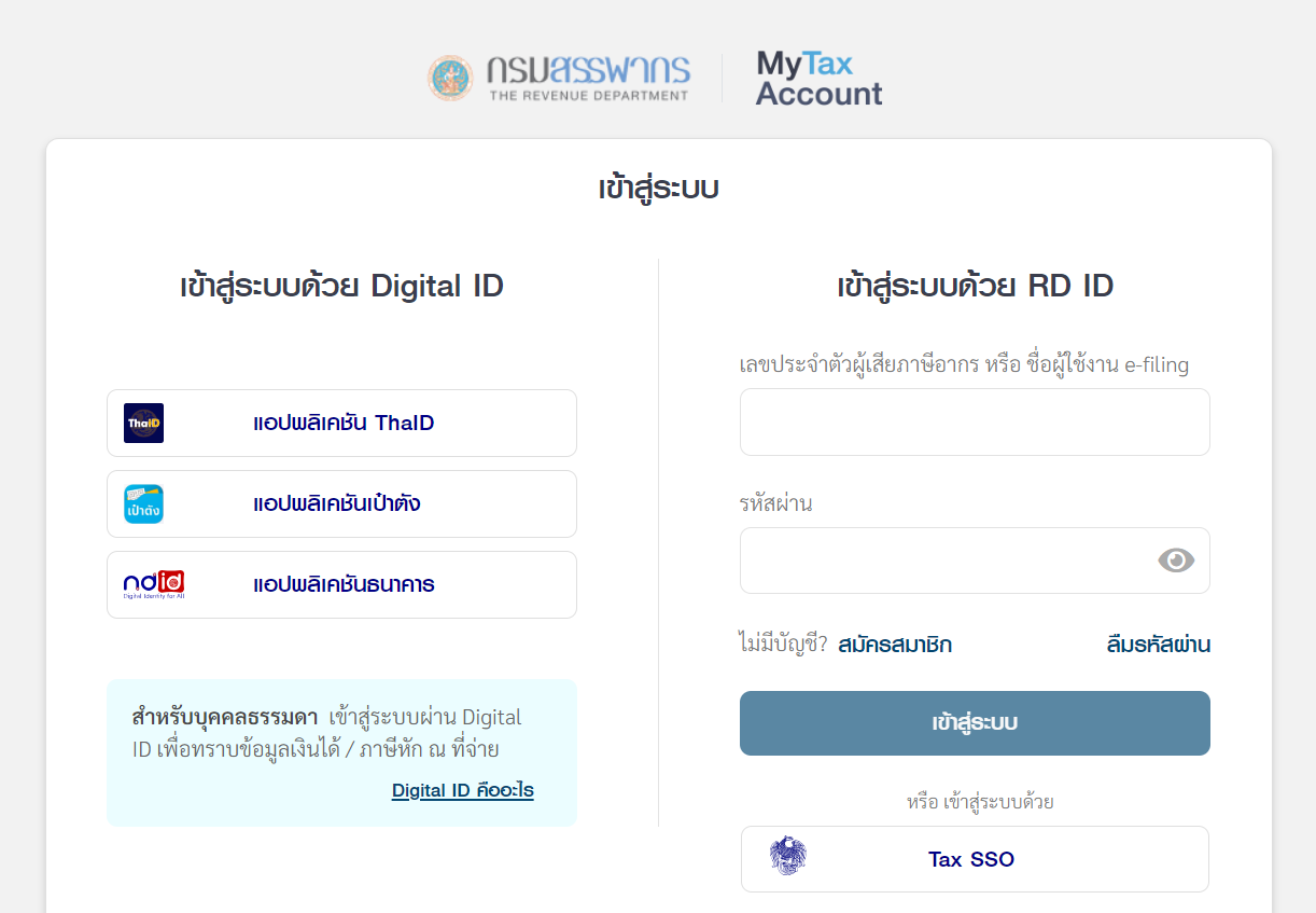 - เข้าเว็บไซต์กรมสรรพกร >> https://efiling.rd.go.th/rd-efiling-web/authen/MTA2